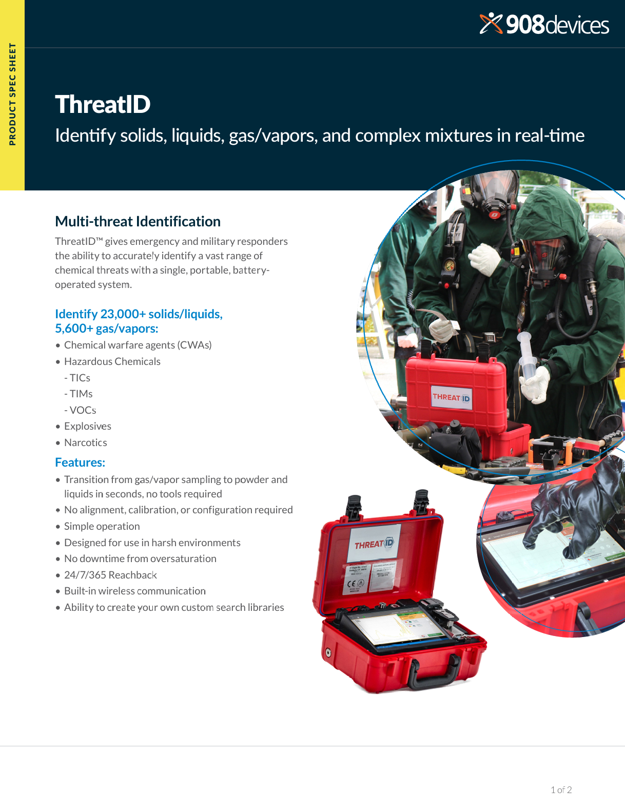 Portable FTIR chemical threat identification for emergency and military responders. Accurately identify a vast range of chemical threats, even in complex mixtures.